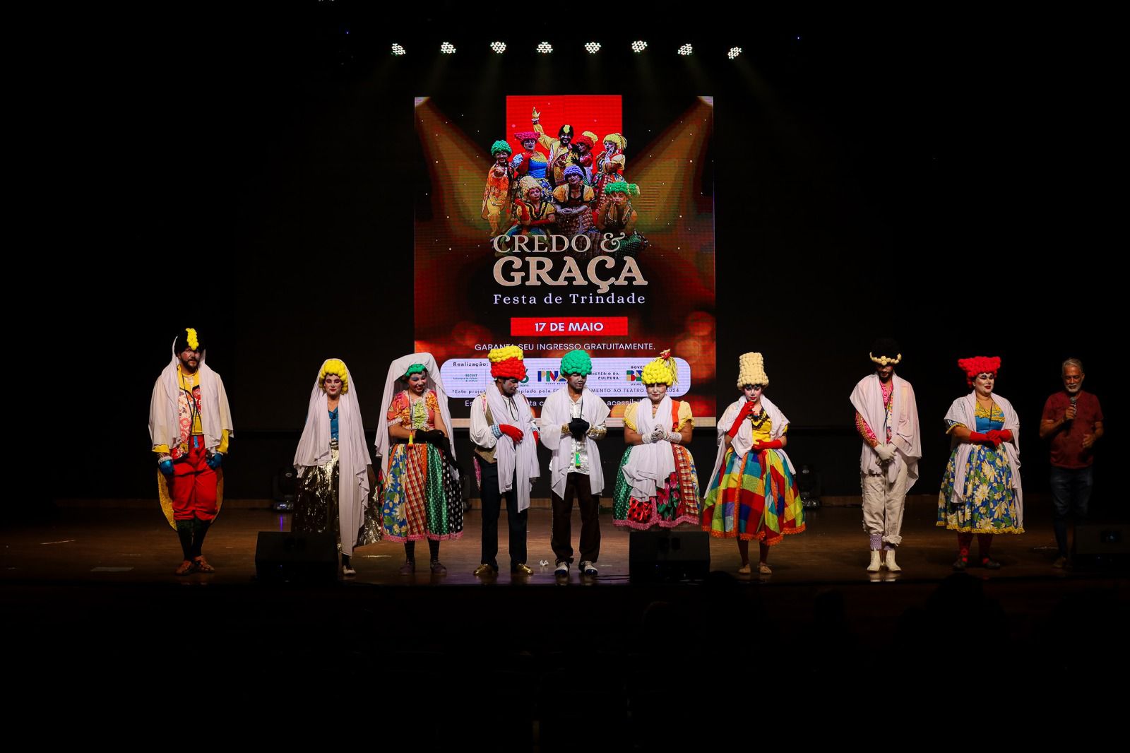 Aconteceu neste sábado (17), às 20h, o espetáculo “Credo e Graça – Festa de Trindade”, no Cineteatro Padre Jesus Flores. A obra é uma criação do Grupo Desencanto de Teatro e propõe, com leveza e elementos de comicidade, uma leitura cênica da fé e da cultura popular que marcam a tradicional Romaria do Divino Pai Eterno, considerada uma das maiores manifestações religiosas do país.