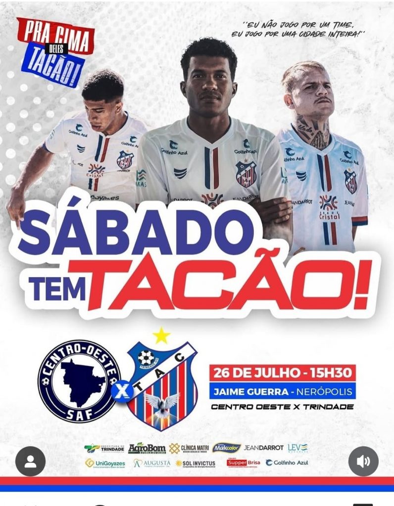 Depois de 65 dias, o Trindade Atlético Clube(TACÃO), tem neste sábado, contra o Centro-Oeste no Estádio Jaime Guerra em Nerópolis, um dos jogos mais importantes da história do clube. Uma vitória vai deixar o time em uma excelente posição para voltar a Elite do Futebol Goiano.