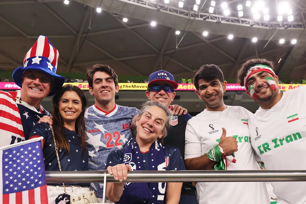 Na diplomacia do futebol, não há fronteiras. Se há, são mais fáceis de romper. Dois lados opostos se unem por uma “selfie”, um abraço, ou apenas viver a festa que é uma Copa do Mundo. E isso faz com que torcedores de duas nações que não têm relações diplomáticas há 40 anos se unam nas arquibancadas. Foi o que se viu em Irã 0 x 1 Estados Unidos.